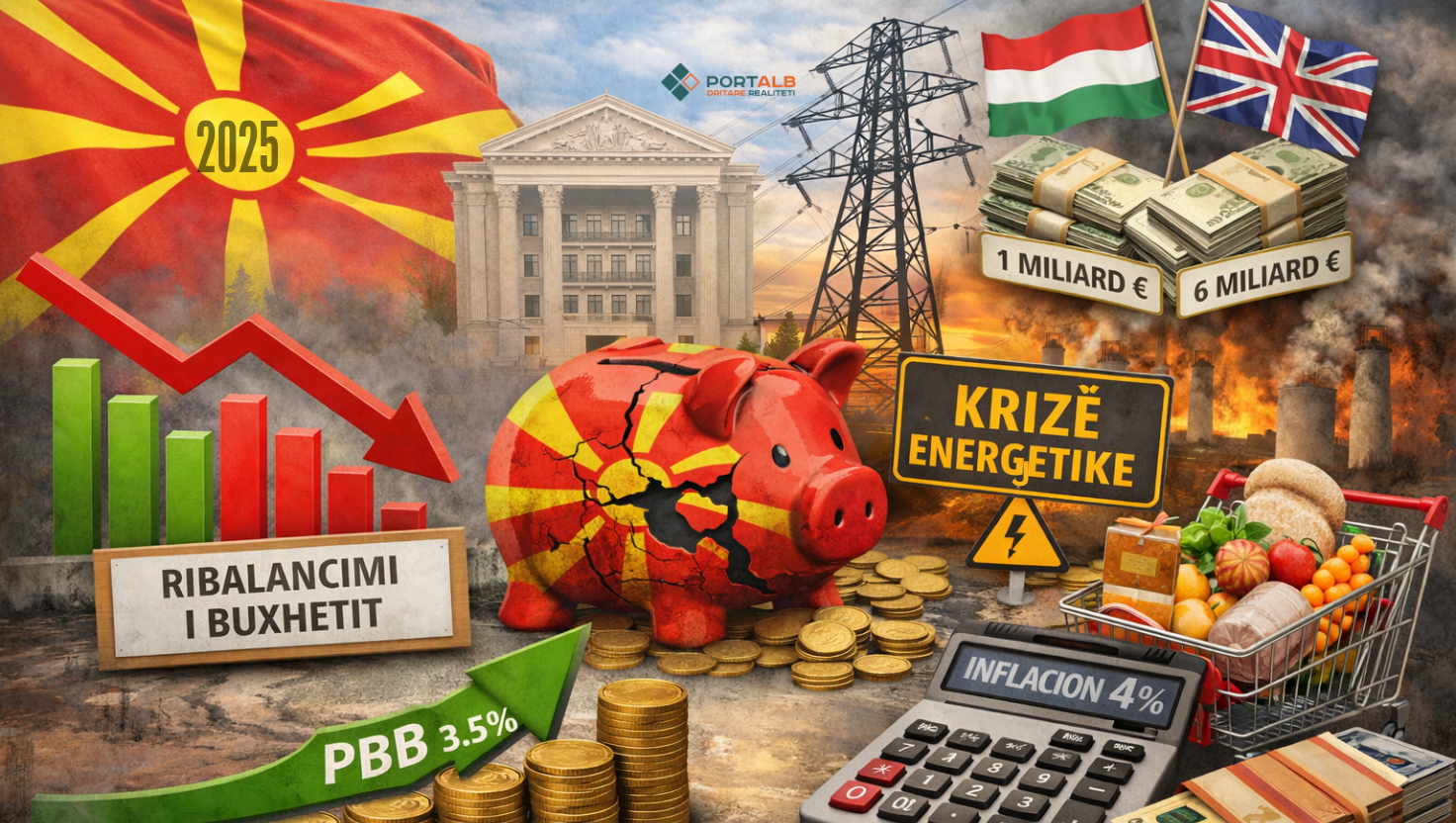 Измина првата економско-буџетска година во целиот менаџирана од Владата на премиерот Христијан Мицкоски. Годината која започна со амбициозен план за економски раст, инфлација под 3%, намален буџетски дефицит, зголемени јавни инвестиции, завршува со пораст на трошоци на живот за 4%, раст на БДП од 3,5%, ребалансиран Буџет со намалено ниво на капитални расходи, пишува Порталб. Во 2025 та НБМ доби нов гувернер, на ниво на државата се прогласи кризна состојба во енергетиката.