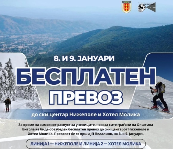 Од Општина Битола информираа дека локалната самоуправа и јавното претпријатие „Пелалинк“ и оваa зима за време на зимскиот распуст за учениците, но и за сите граѓани обезбедија бесплатен превоз до ски центрите на Нижо Поле и „Молика“.