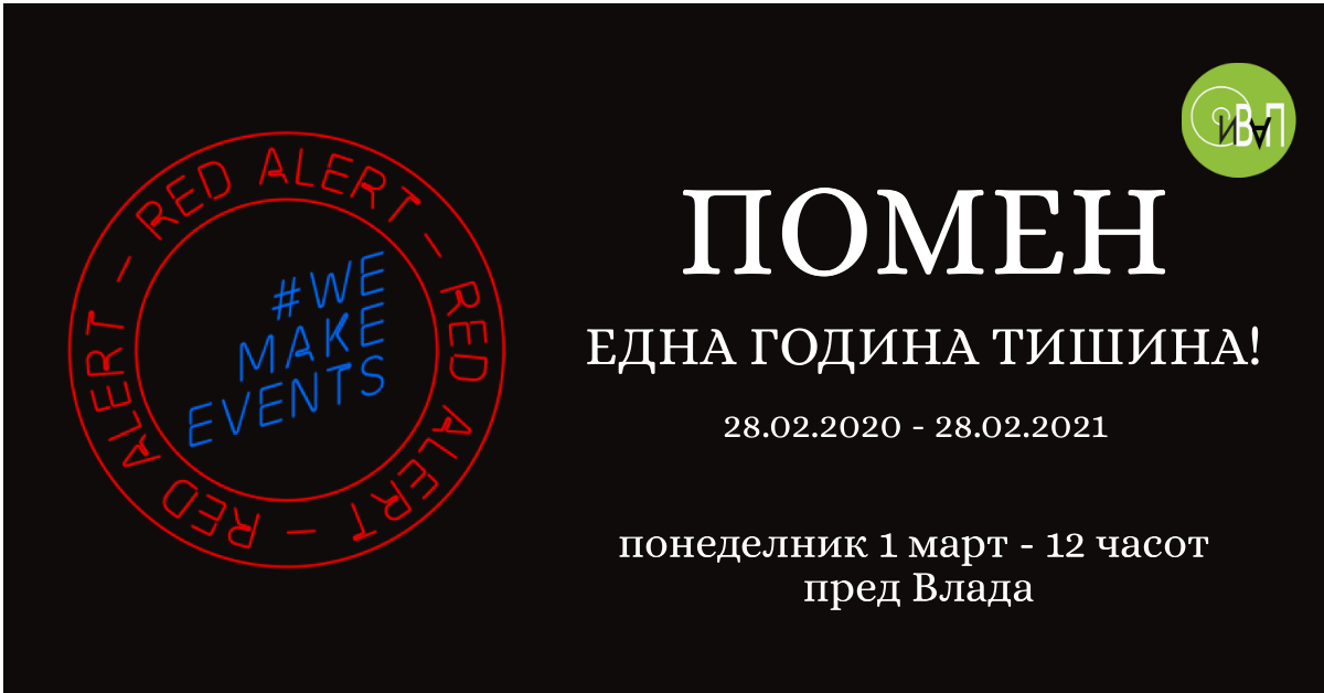 Под мотото „Помен – една година тишина!“ Асоцијацијата на ивент индустријата во понеделник (1 март) од 12 часот ќе одржи протест пред Владата на кој ќе го изразат своето незадоволство од тоа што точно една година откако започна забраната за одржување јавни настани што предизвика сериозни последици по оваа индустрија.