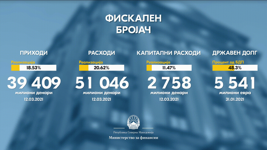 „Фискалниот бројач“ е новата алатка за транспарентност поставена на веб страницата на Министерството за финансии со високофрефентни податоци, која на дневна основа ги прикажува приходите, расходите во буџетот и извршувањето на капиталните расходи, додека на месечна основа го прикажува државниот долг. Целта на оваа алатка, објавена на веб-страната на министерството, е понатамошнa отвореност на буџетот кон јавноста, за да се постигне уште повисоко ниво на фискална транспарентност.