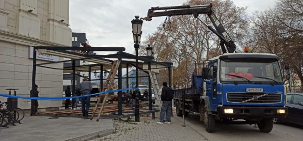 [Фото] Центар ја отстранува терасата на „Аманет“, ресторанот тврди дека била законски поставена