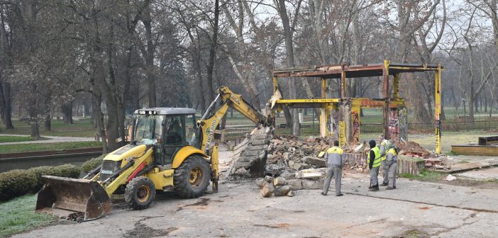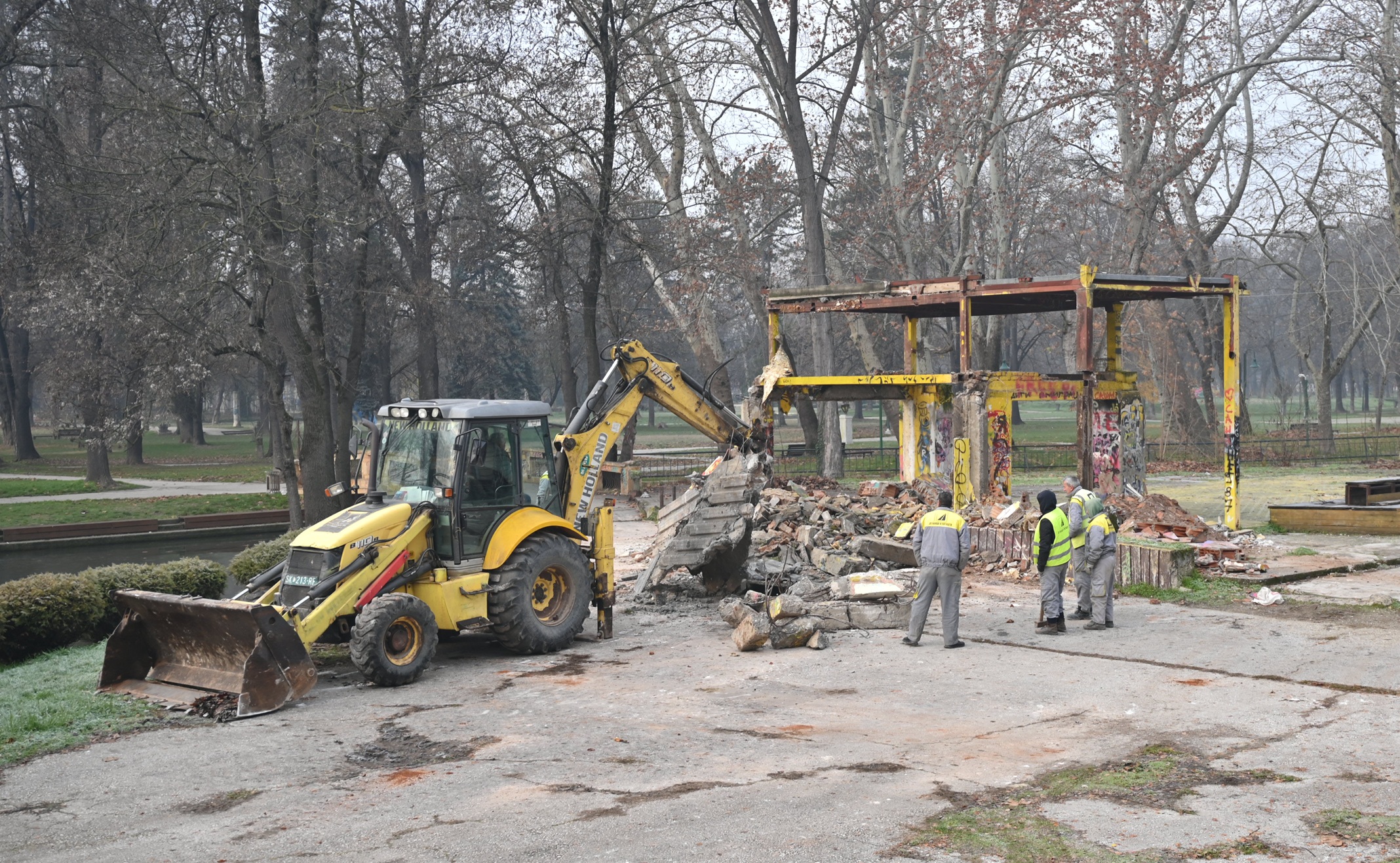 Багер утрово беше во погон да ги отстранува и последните остатоци од некогашниот култен ресторан „Езерце“, лоциран во Градскиот парк во Скопје.