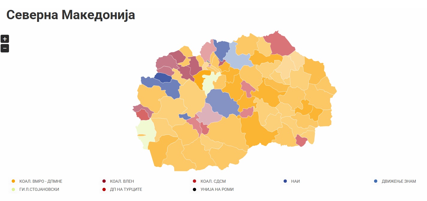 Односно, ВМРО-ДПМНЕ освои 18 мандати, Левица, Влен и ДУИ имаат по 6, а СДСМ – 5 мандати.