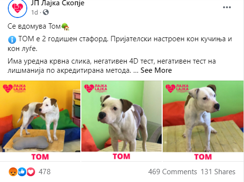 Иако од стационарот најавија дека недоразбрањата се надминати, огласот за вдомување на стафордот и утрово стоеше на Фејбук профилот на јавното претпријатие.
