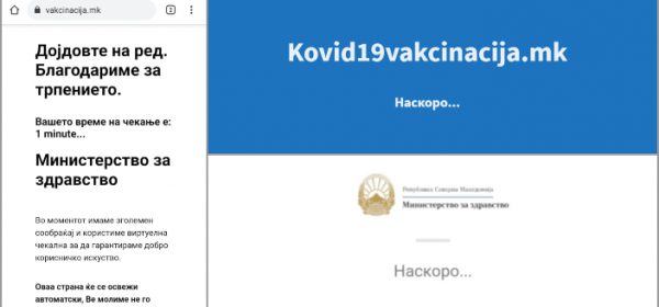 Интернет страниците vakcinacija.mk и kovid19vakcinacija.mk од денеска треба да бидат достапни за електорнско пријавување на сите заинтересирани граѓани од Северна Македонија кои сакаат да примат вакцина против Ковид-19. Во моментов сајтовите уште не се достапни за пријавување, и на почетните страници се појавува текст „наскоро“, но како што вчера изјави Министерот за здравство, Венко Филипче, … Continue reading Од денеска треба да бидат достапни сајтовите за закажување за вакцинација за Ковид-19