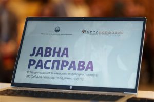Отворените податоци се горивото на иднината, а македонските институции треба да ја подобрат својата достапност, отвореност и транспарентност. Денеска во организација на Министерството за дигитална трансформација и Фондацијата Метаморфозис се одржа јавна расправа за текстот на нацрт- Законот за отворени податоци и реупотреба на податоците од јавниот сектор, кој е усогласен со европските директиви и треба да ги утврди правилата и начините како да се стигне до отворените податоци, а на државните институции да им постави јасни протоколи како и кои податоци треба да ги објавуваат и да ги направат достапни за целата јавност, пренесува агенцијата Мета.мк.