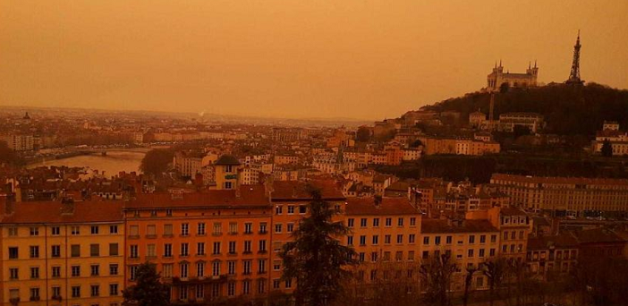 Облакот со ситен песок кој се разнесе северно од Алжир го затемни небото во црвена боја и се измеша со свежите врнежи од снег на Алпите и Пиринеите, претворајќи ги падините во портокалова боја. Ваквите појави се случуваат обично на пролет на северната хемисфера, објаснуваат од Коперник.