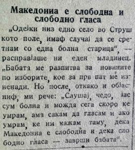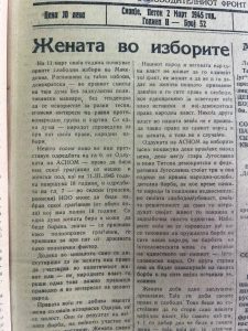 Во новиот број на рубриката ,,Старо-Нова Македонија”, се навраќаме во пролетта 1945 година, кога само неколку месеци по ослободувањето, граѓаните на Македонија за првпат масовно излегуваат на избори и гласаат за новата власт. Овие избори се историски и по уште една причина: за првпат жените во Македонија добиваат право на глас и право да бидат избрани.