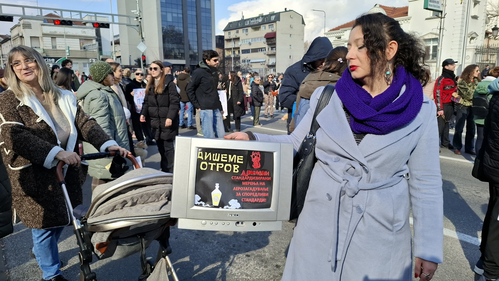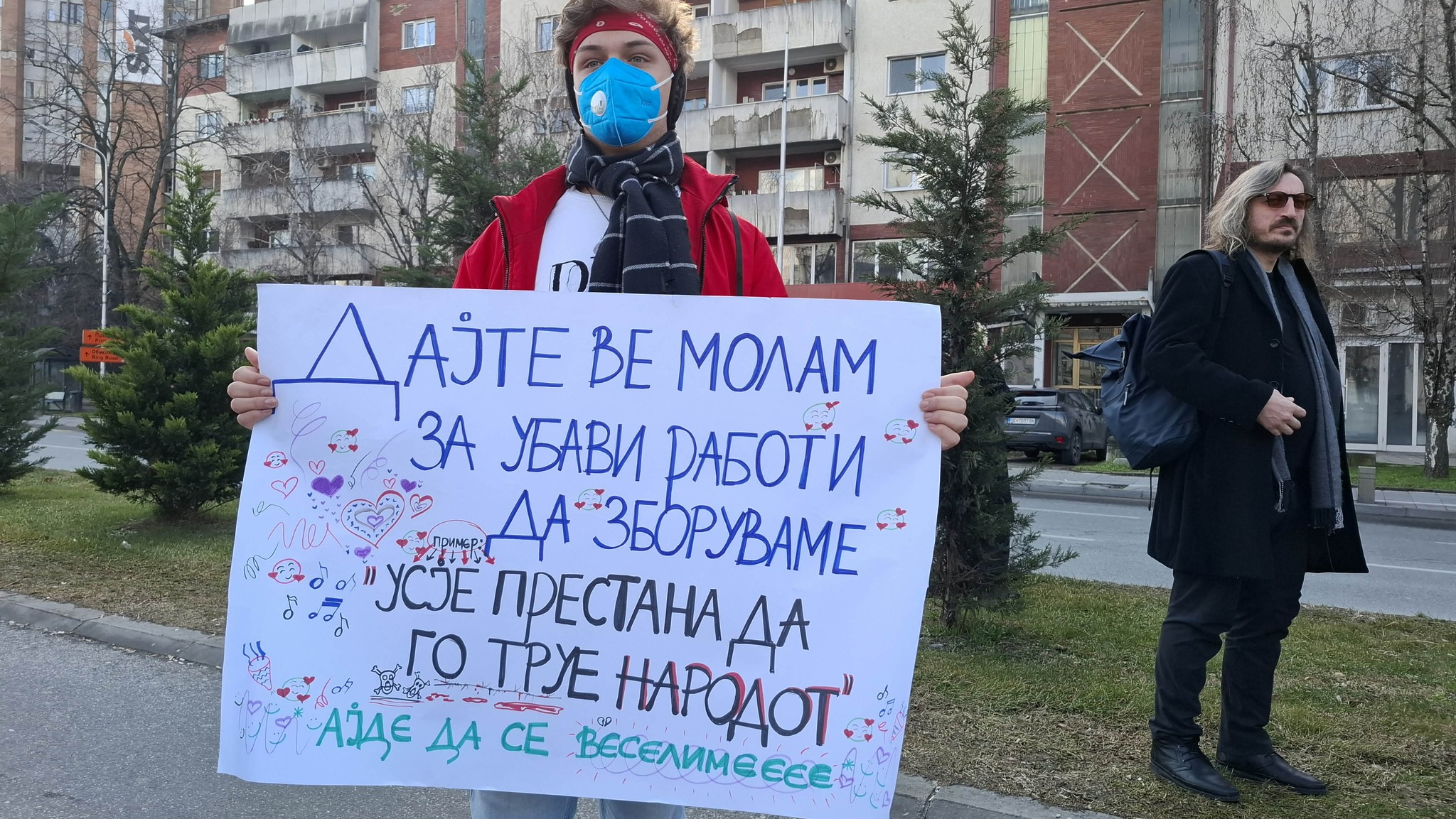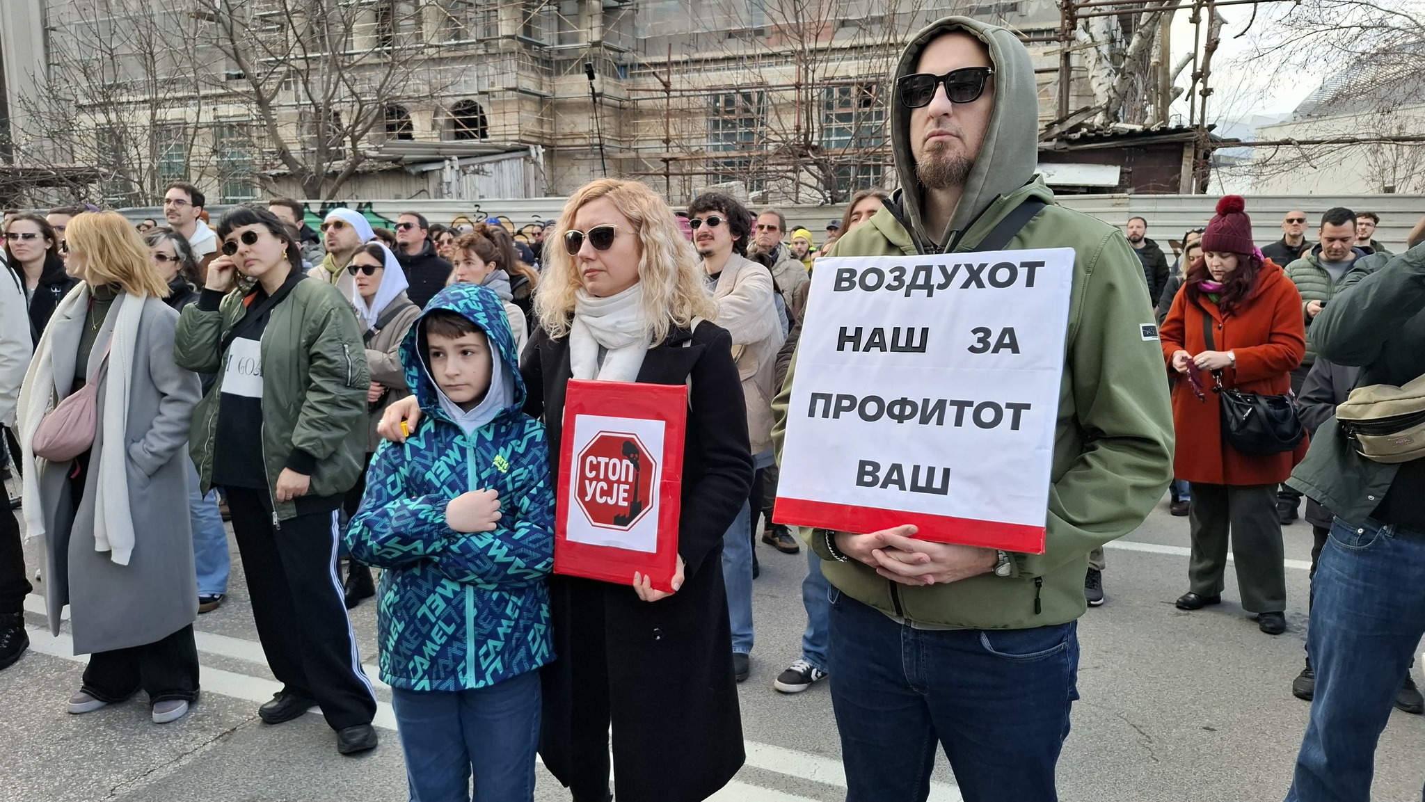 „Тоа е важен документ, кој ја регулира работата на фабриките. Усје сега во март 2026 треба да поднесе барање за да се продолжи таа дозвола. Тука е моментот кога ние како народ можеме да влијаеме, за да не нè загадуваат“, рече девојка од импровизираната бина пред МЖСПП.