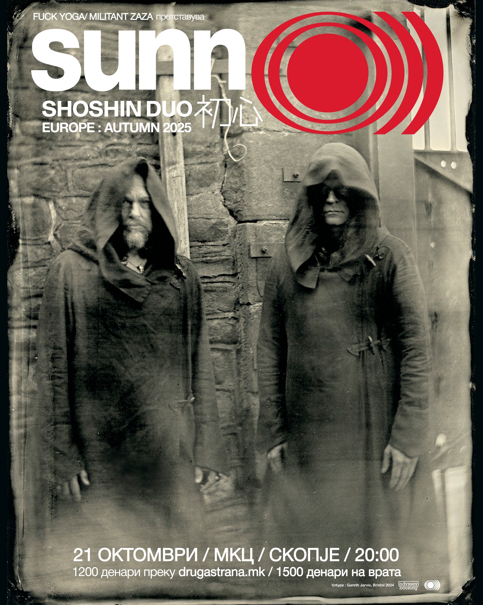 Американското дроун-метал-нојз дуо „Sunn O)))“ вечерва (21 октомври) настапува во Младинскиот културен центар (МКЦ) во Скопје