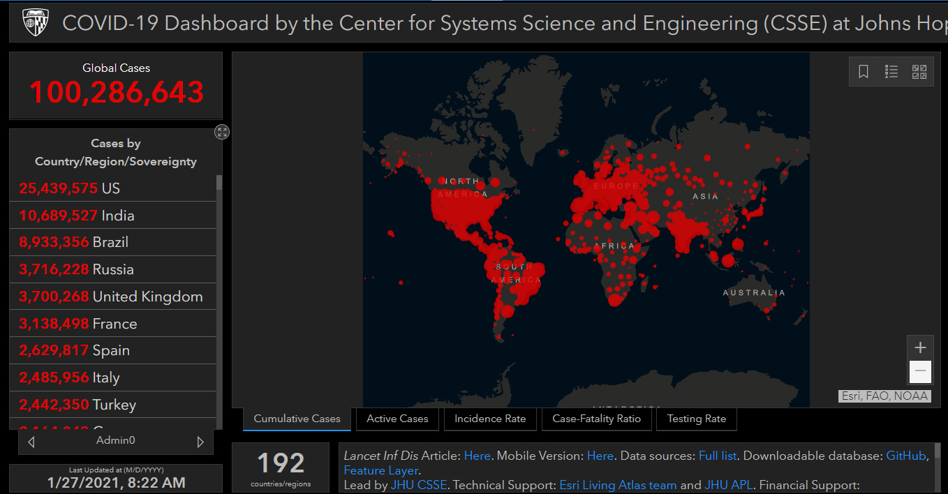 Изминатово деноноќие светот надмина 100 милиони регистрирани случаи на заразени со коронавирусот, бројка која нагло растеше изминативе недели откако голем број држави се справуваат со нови пикови од вирусот.