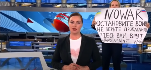 Вработена во руската државна телевизија „Канал 1“ ги прекина централните вести со протест против руската инвазија на Украина. Марина Овасјаникова, уредничка во телевизијата, влета во текот на емитувањето на вестите во живо извикувајќи „Стоп за војната, Не за војната!“. Таа истовремено држеше натпис на кој пишуваше „Не верувајте на пропагандата. Тие ве лажат овде“, додека … Continue reading [Видео] „Ве лажат“ – Новинарка упадна во вестите на руската државна телевизија со анти-воен протест