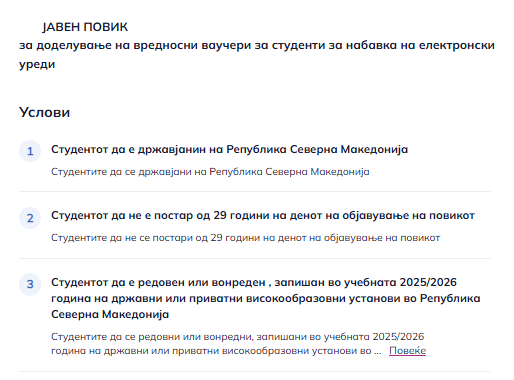 Долгонајавуваните ваучери за електронски уреди конечно станаа достапни за студентите, но нивното распределување не помина без серија проблеми уште во првиот ден. Студентите, како што самите посочуваат коментирајќи на објави на социјалните мрежи, се соочиле со технички и административни пречки, нејасни правила и пад на системот. Од друга страна, портпаролката на Владата, Марија Митева, на денешната прес-конференција се пофали дека организацијата на постапката била брза, критериумите биле јасни, системот за доделување и реализација на ваучерите бил технички усогласен, а процесот бил транспарентен, пренесува агенцијата Мета.мк.