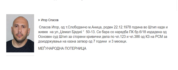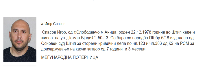 Како што потенцираат од МВР, властите во Бугарија постапиле по распишаната меѓународна потерница за Спасов.
