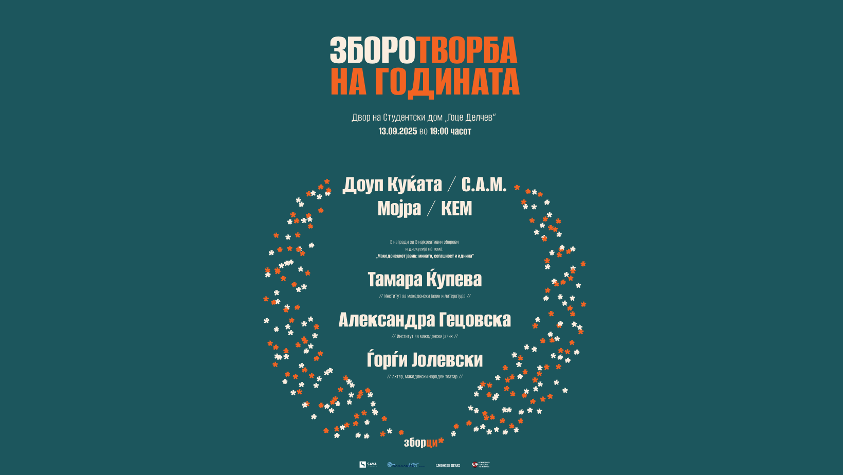 Здружението Зборци ја организира првата „Зборотворба на годината“, настан посветен на македонскиот јазик, креативноста и уметноста кој ќе се одржи на 13 септември (сабота) со почеток во 19 часот, во дворот пред студентскиот дом „Гоце Делчев“ во Скопје.